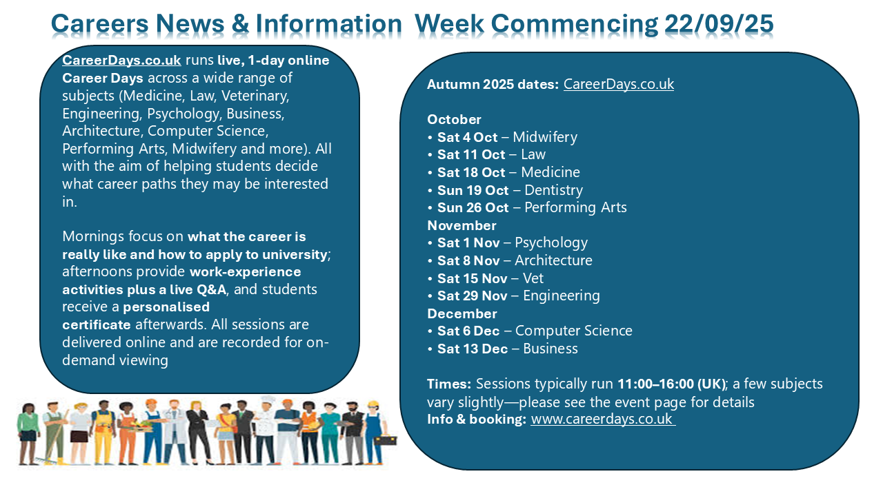 - We continue to use and build upon extra-curricular opportunities and external partnership links to support and indeed, enhance the range of opportunity and access that students have, to engaging and relevant careers advice.